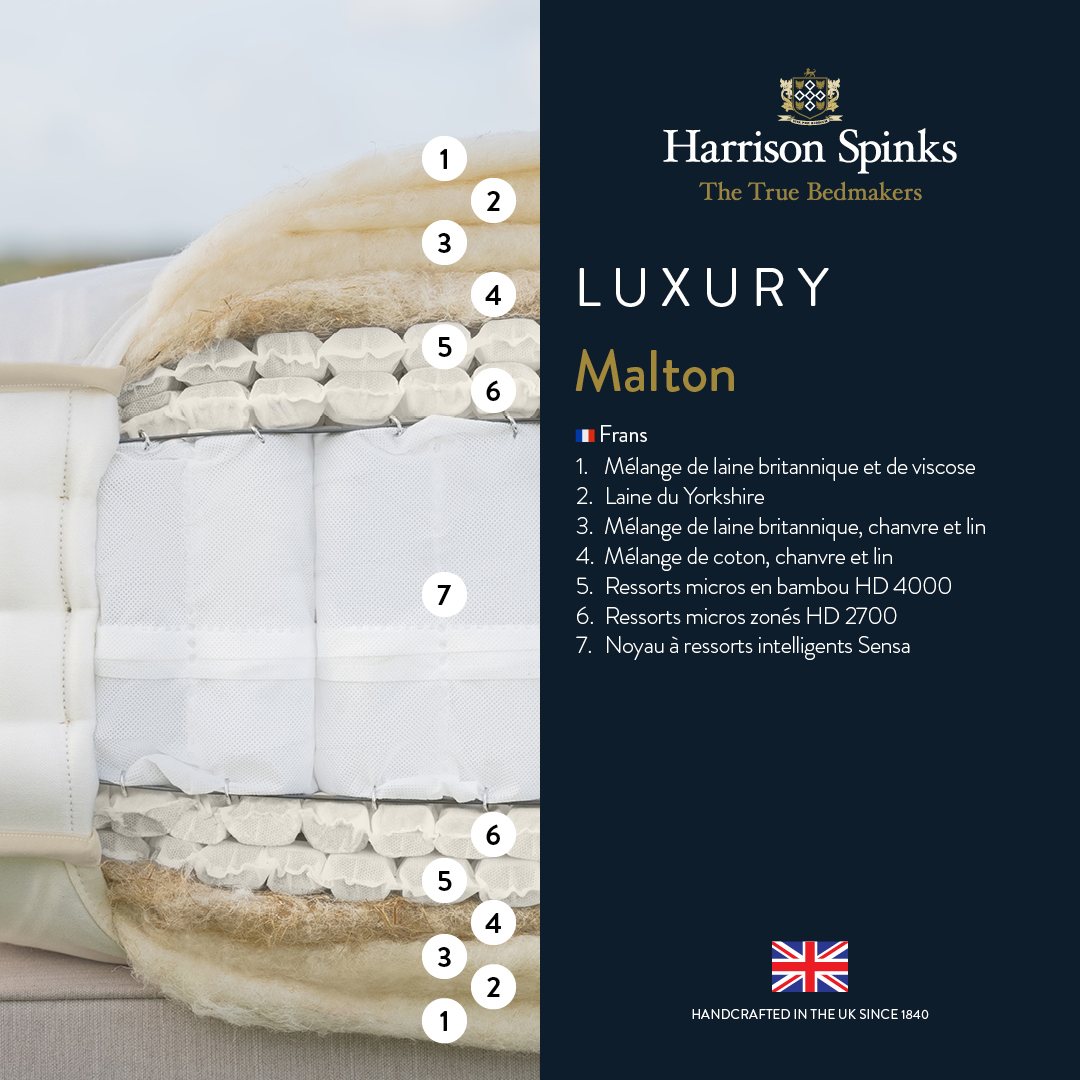 For a century, we have selected only the finest for your sleep. Today, this quest for perfection reaches a new milestone. We have the privilege of announcing the arrival of a legendary British bedding brand: Harrison Spinks.
